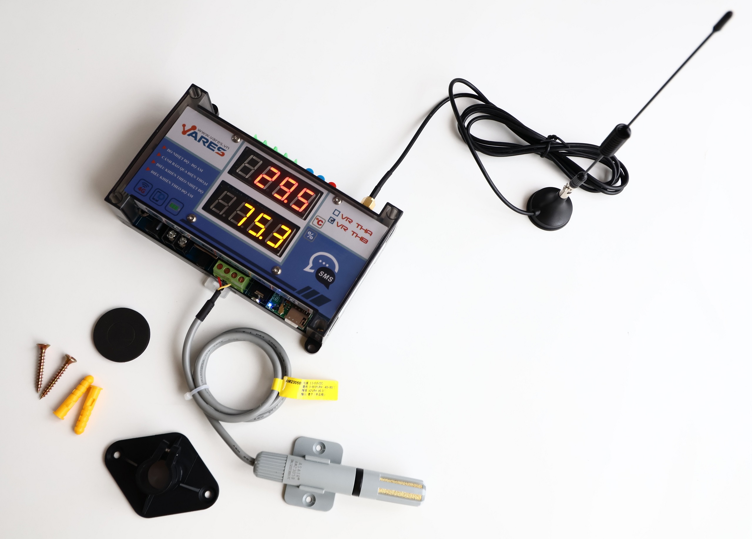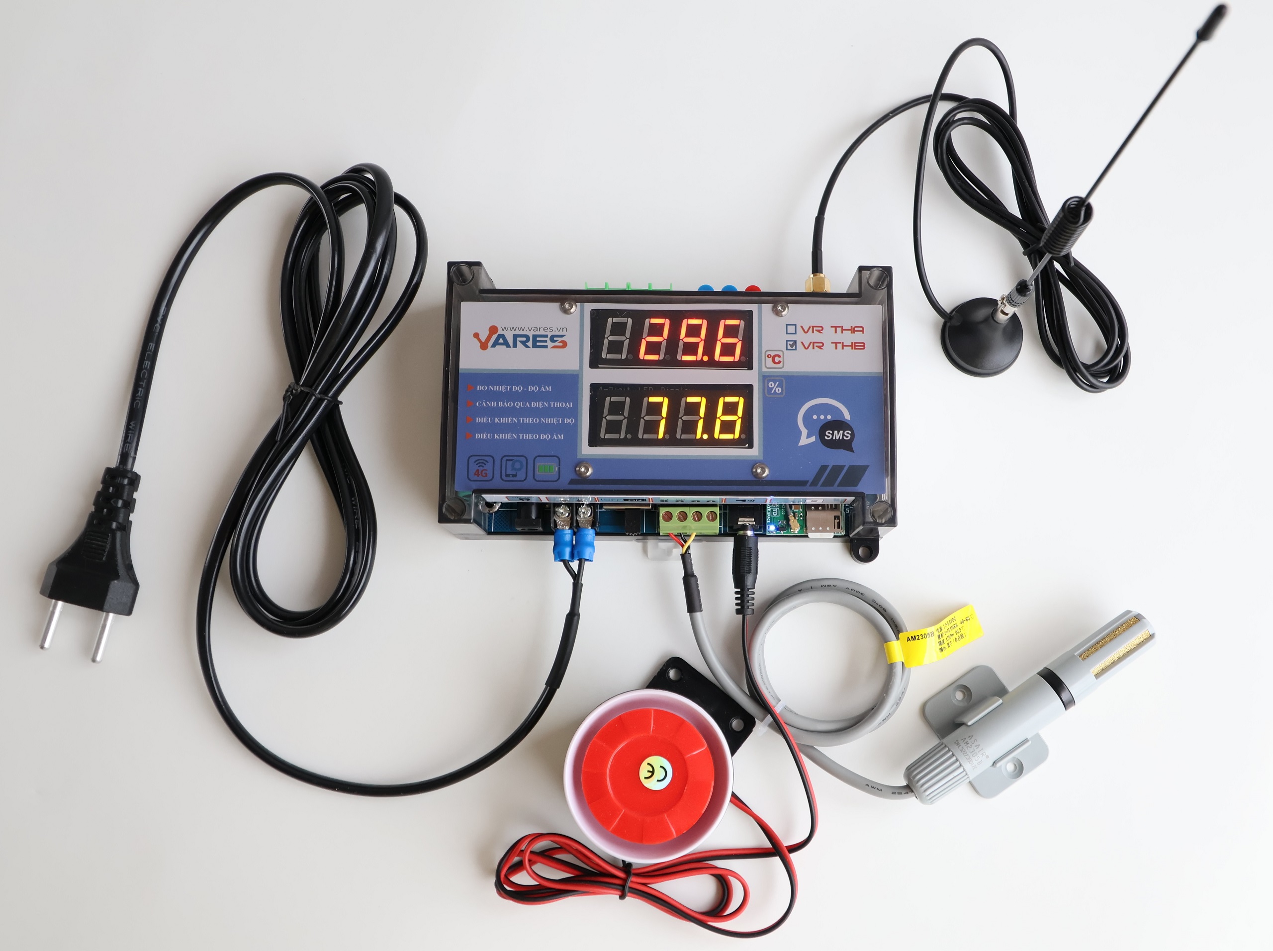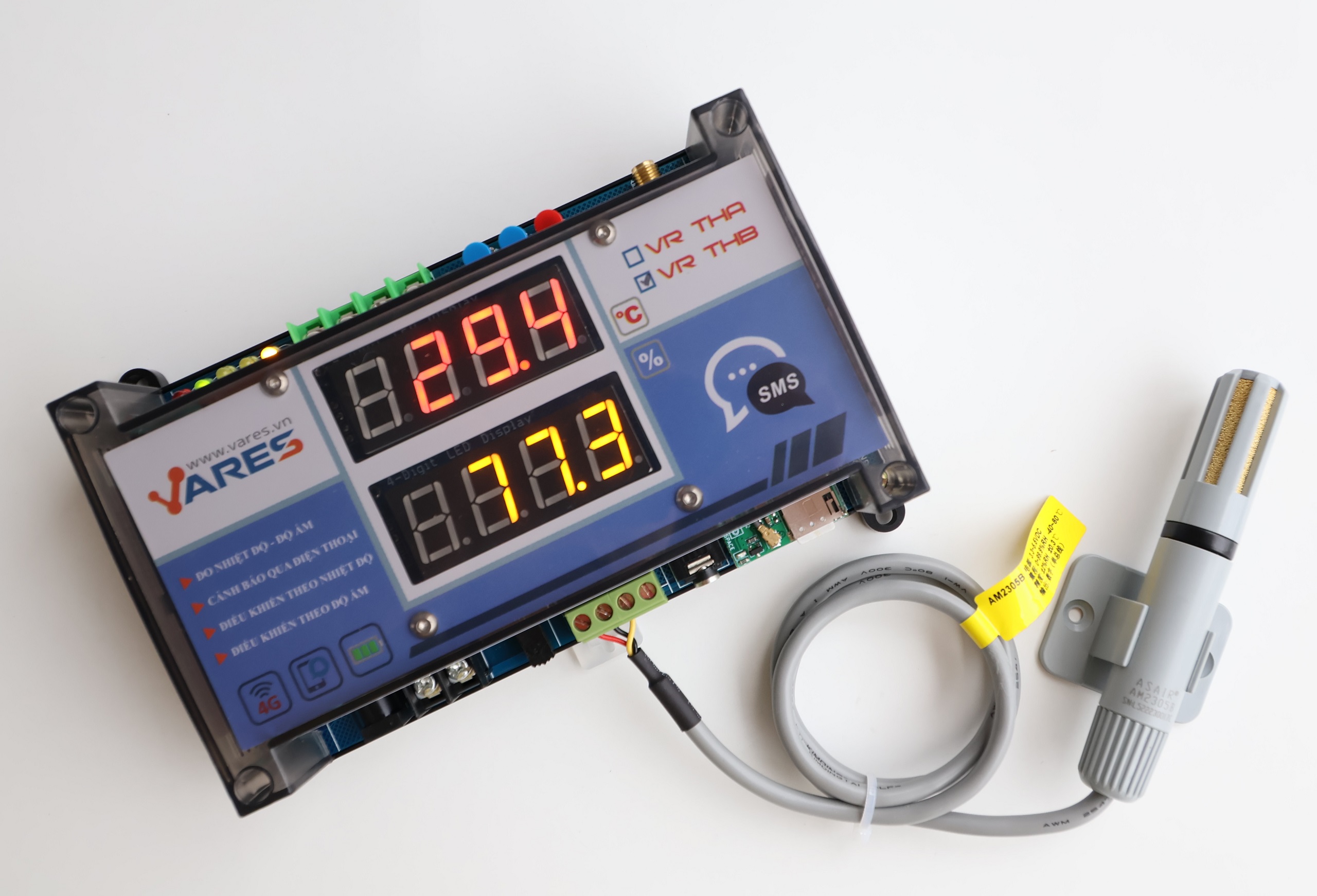 [VR-THB] Thiết bị cảnh báo nhiệt độ, độ ẩm, cảnh báo mất điện qua điện thoại, điều khiển 02 ngõ ra theo nhiệt độ, độ ẩm