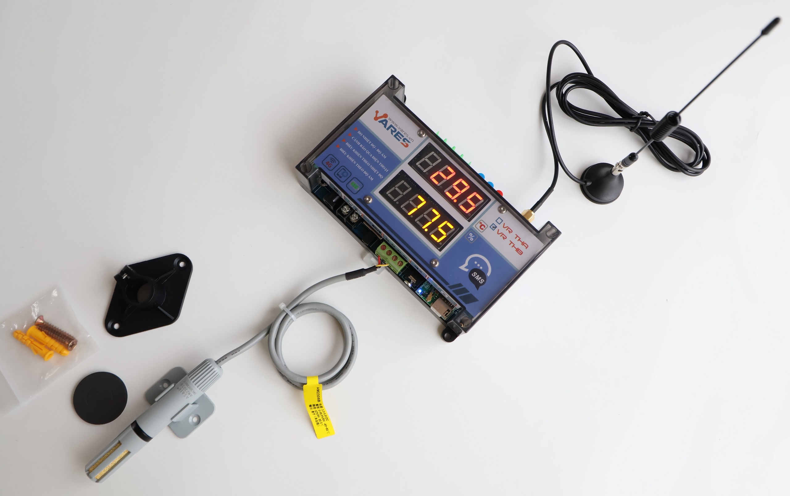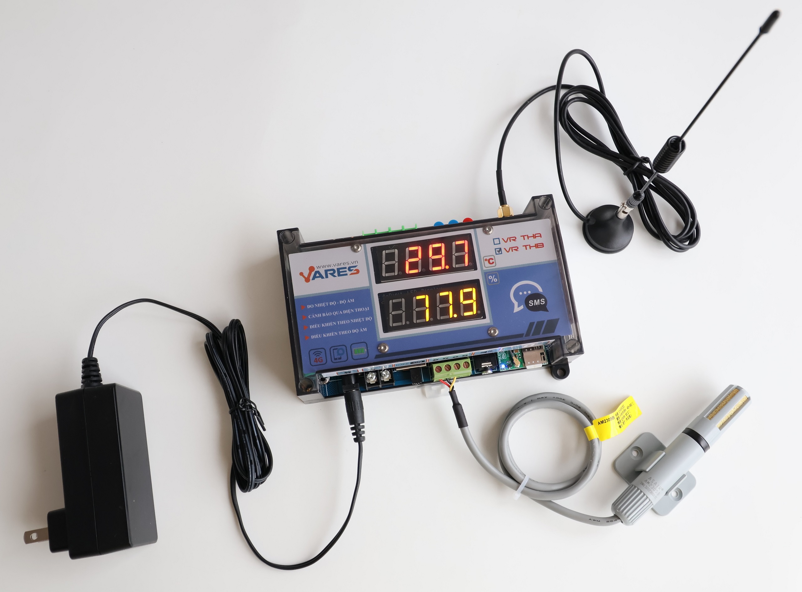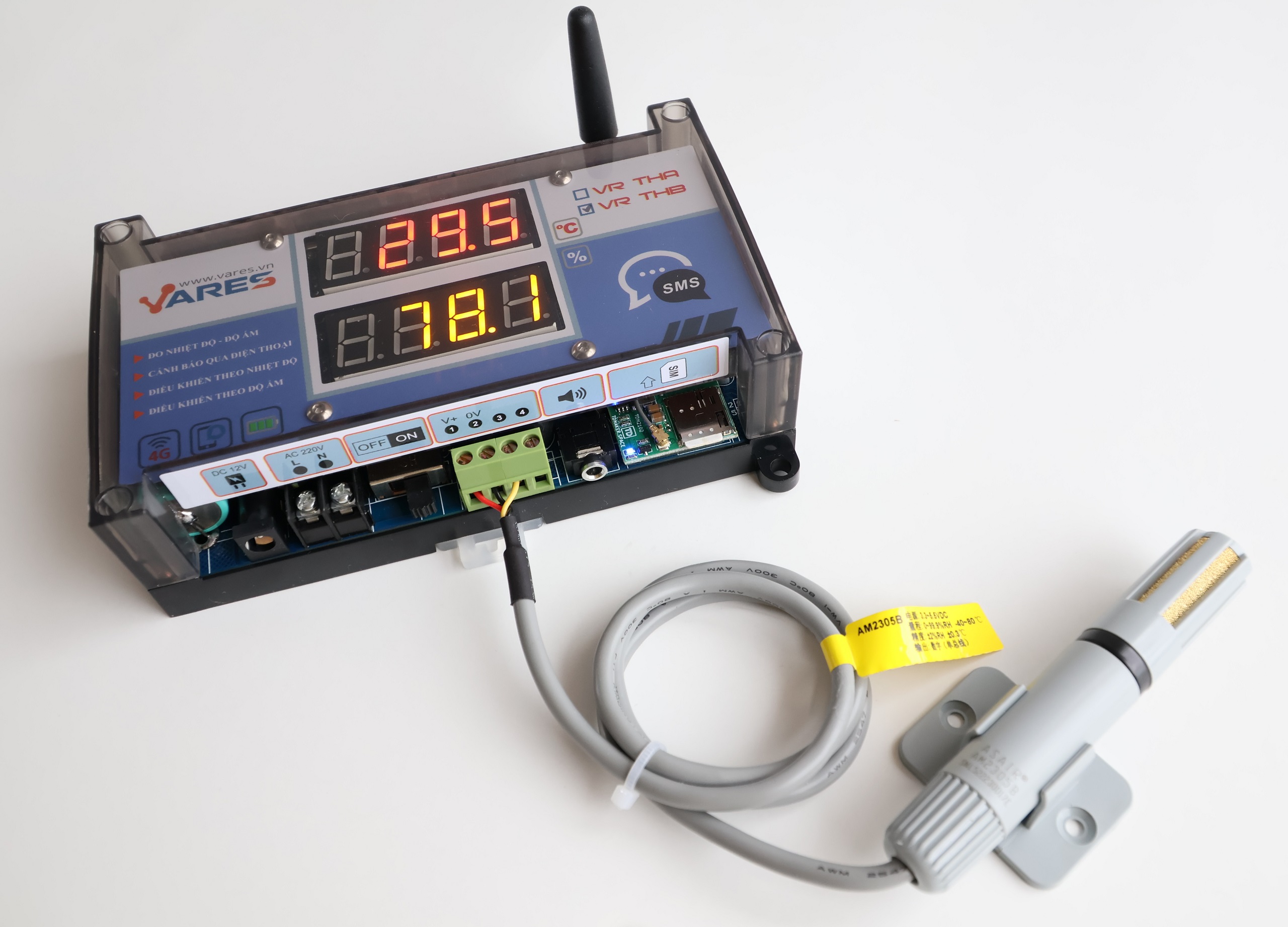 [VR-THB] Thiết bị cảnh báo nhiệt độ, độ ẩm, cảnh báo mất điện qua điện thoại, điều khiển 02 ngõ ra theo nhiệt độ, độ ẩm