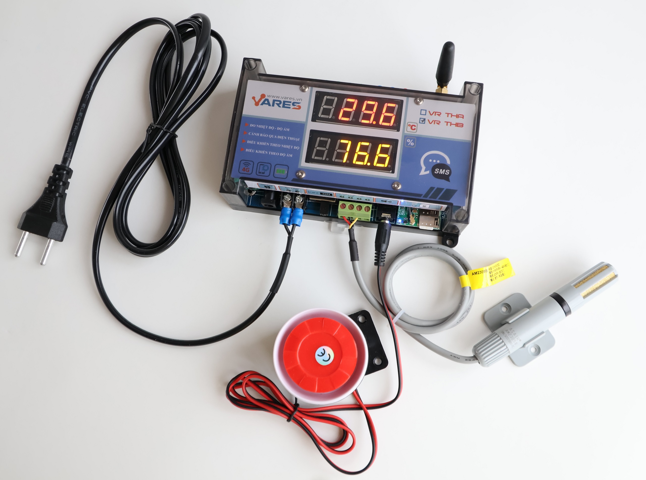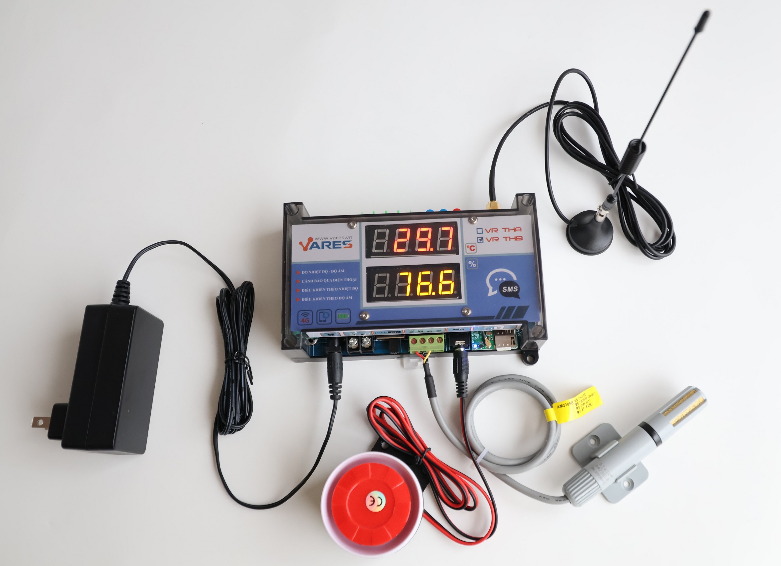 Thiết bị cảnh báo nhiệt độ, độ ẩm, cảnh báo mất điện qua điện thoại, điều khiển 02 ngõ ra theo nhiệt độ, độ ẩm